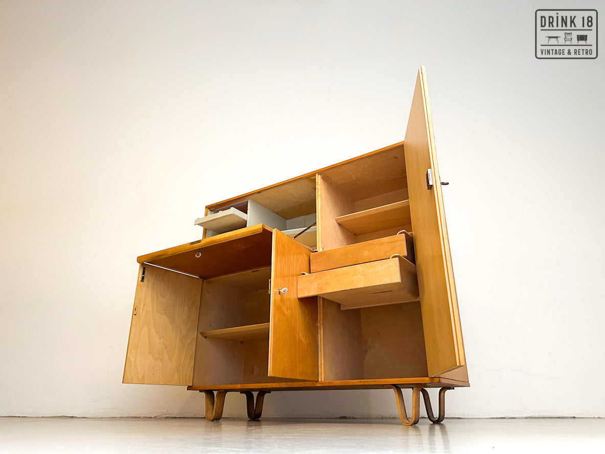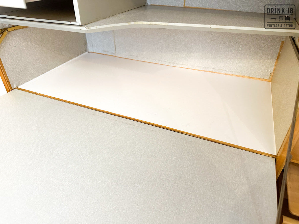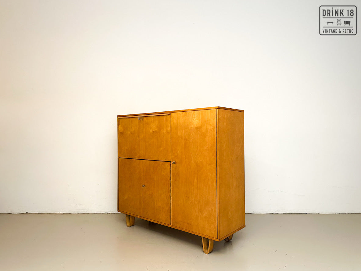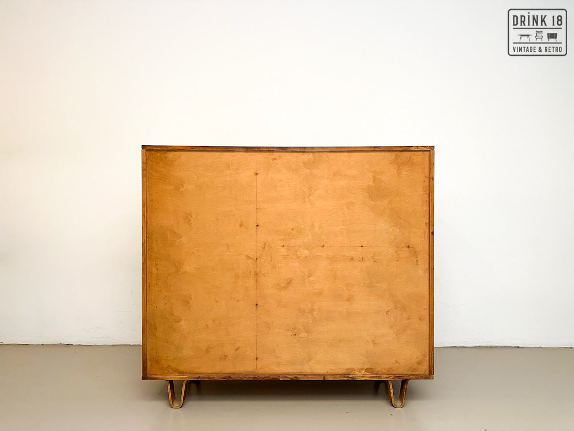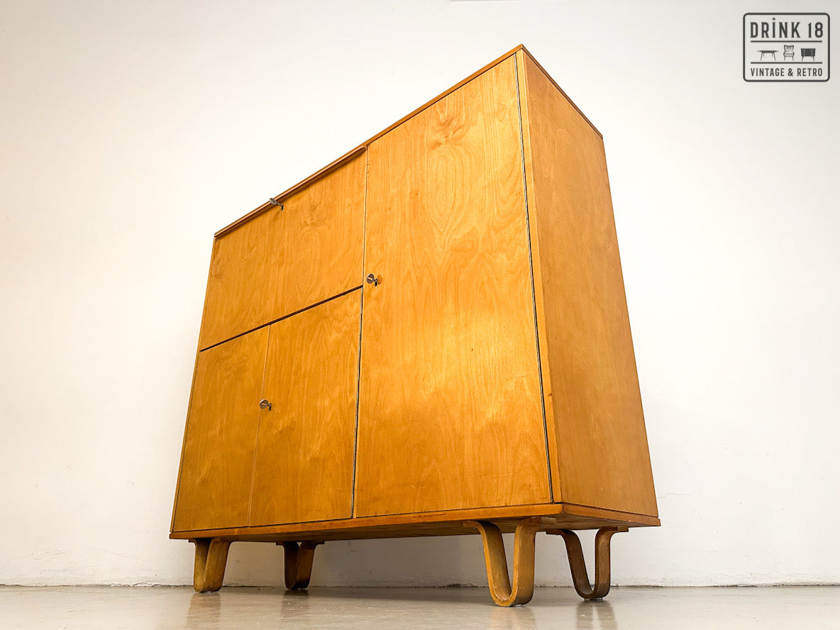 Een unieke kans om een iconisch stuk Dutch Design in huis te halen! Deze zeldzame 50’s CB01 wandkast van Cees Braakman (Pastoe) is uitgevoerd in berken en berkenfineer en combineert een strakke, tijdloze look met slimme functionaliteit. De klepdeur transformeert in een handig werkblad – ideaal als bureau, secretaire of bar.